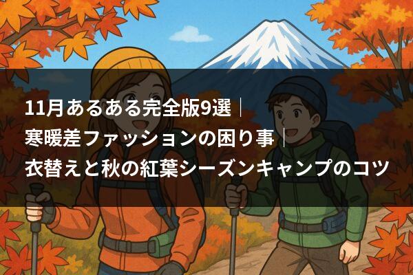 この記事では、そんな11月ならではの寒暖差ファッションの困りごとから、衣替えのリアルな状況、さらには秋の紅葉シーズンに楽しむキャンプのコツまで、多くの人が「そうそう、それ!」と共感できる11月あるあるをまとめました。